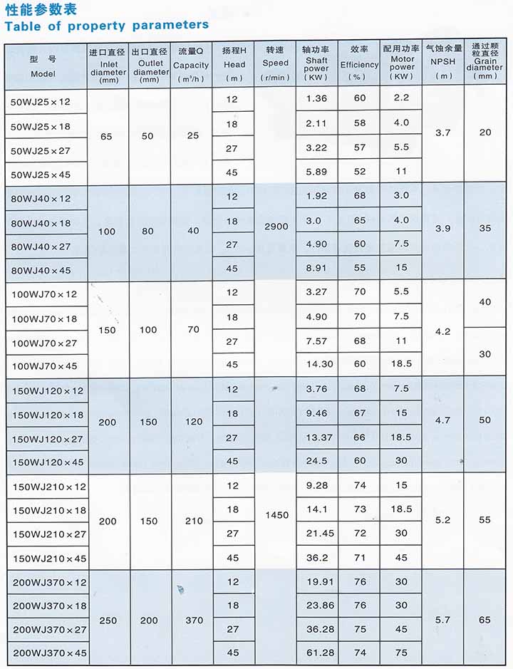 概述: WJ型漿泵是采用無堵塞泵的原理,開發(fā)的新一代漿泵系列產(chǎn)品,該泵采用國外先進的雙流道式葉輪、各種纖維,顆粒通過性能好,具有無堵塞、輸漿濃度范圍廣等特點??赏ㄟ^棉漿、木漿、各種顆粒、污水垃圾等。與ZBJ型紙漿泵相比,使用壽命長,節(jié)能效果顯著,效率可提高10-15%,如過流部分采用ZG1Cr18N19Ti、ZG1Cr18Ni12Mo2Ti材質(zhì),可適用于輸送200℃以下,含有腐蝕性液體的管道,代替?zhèn)鹘y(tǒng)的襯膠泵。主要用于輸送制漿、造紙、化纖等各種漿料及三廢處理等部門。濃度可達2-5%,采用特殊葉輪濃度可達8%左右。